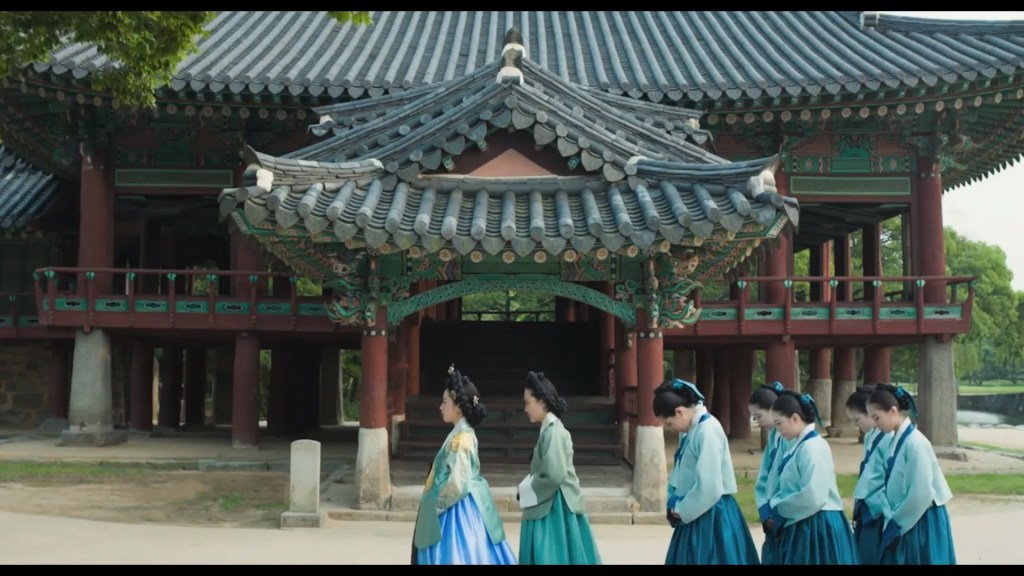 If those formal aspects are the engine, driving all K-drama, what’s unique to the language here is the subject matter. It’s fascinating the role attire plays in the palace drama here, with the verbs of the story and the characters’ agency hinging on clothes. The plot soon points toward the crafting of an ultimate garment for the queen to save her from being dethroned, and while silly on paper, its consequence on film is undeniable. Just as I’ve learned how to watch The Royal Tailor, I’ve developed an eye for hanbok, and the queen’s ceremonial dress is indeed stunning. Everyone along her path gets down on hands and knees, and I totally get that (though it is Park Shin-hye, so it wouldn’t take that much for me). It’s not just about the clothes themselves, it’s about their function as keys to the kingdom, how they announce status and wealth. And yet, it’s also kind of about the clothes themselves, some of which will never see the light of day, after all. Hence, the adjustment on my part. The film will convince me to care about clothing as much as these characters do.