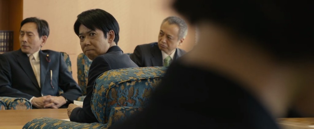 Like Yaguchi, Koriyama is a deputy chief secretary, and he isn’t necessarily a bad guy, doesn’t have that much input, but he does call for meetings and restructuring instead of realizing that once gathered, a team doesn’t need to be gathered again. A change of scenery might help, but it’s the same building — how different could it be? In real life, there were three deputy chief secretaries: Tetsuro Fukuyama, Kinya Takino, and Yoshito Sengoku. There were just a lot of people in the room, and Higuchi and Anno make that point early. In fact, at the time, only Fukuyama and Takino were in the room, but Sengoku was brought on after having left the government just months before following his censuring by the House of Councilors, which is like the US senate but twice as large.