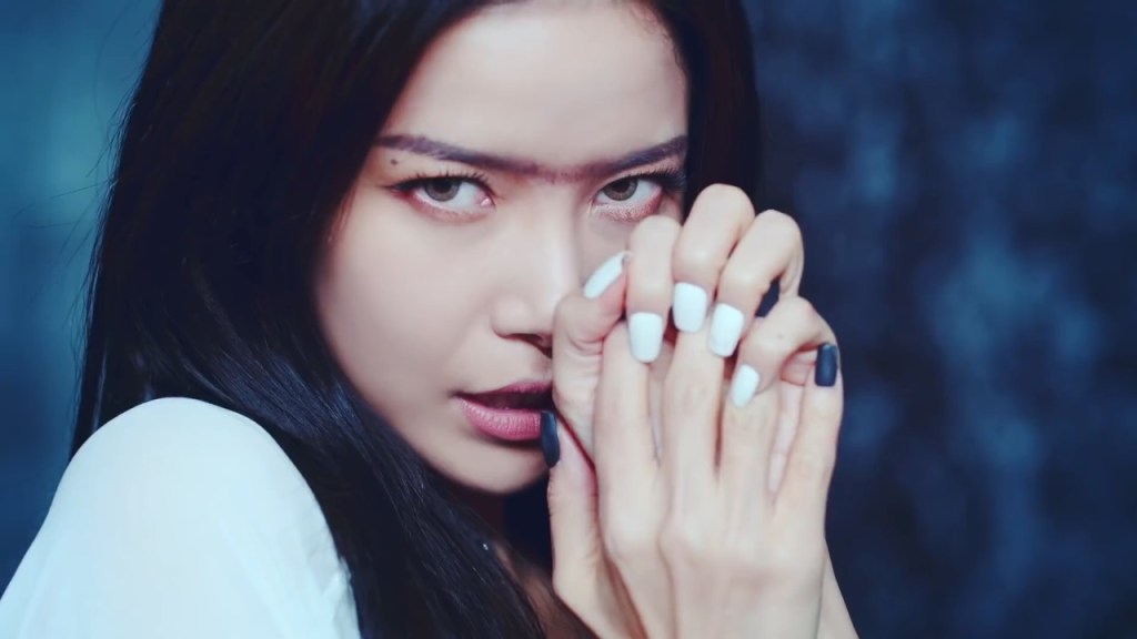 I’m still early in my Mamamoo scholarship, so I’m not sure which quick Hwasa facts are the most relevant or illustrative, but a Wikipedia search gives you an immediate impression — she’s an incredible talent both within Mamamoo and without. She’s the maknae of the group, though the hierarchy is a little different here. The leader Solar is a 1991 birth, making her 30 at the time of this writing. Moonbyul is 28, a late 1992 birth, and they compose the “unnie line.” The maknae line is then Wheein and Hwasa, but they’re both 1995 births. It’s always interesting when that happens, like Bomi and Eunji or Seulgi and Wendy, and there isn’t the usual honorific between them.