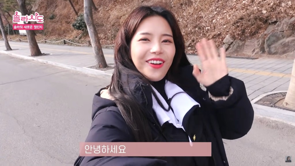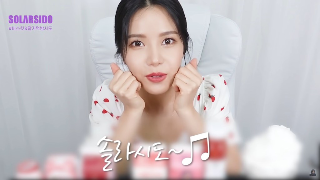 Solar’s YouTube channel is Solarsido, or “Solar’s New Challenge,” in which she takes on a new challenge each time, from learning to surf or cooking a new recipe. The very first video is her throwing a surprise birthday party — for herself. The above image is how Solar introduces herself, with a little jingle. This is someone who has her own catchphrase: “Leggo.”