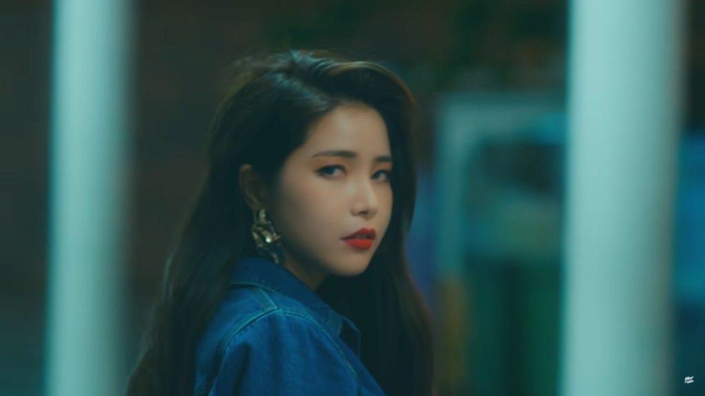 Directly after Fire Flower, we have colder hues for Solar, and another great part of the song. Solar’s voice is unreal, and in this slow-motion shot, she looks super cool. She’s bearing kind of a pissed-off face, so look out. Very recently, Solar’s Instagram photos caused a stir because they showed off her abs. A reminder, if you need it, that your favorite idol can beat you up.