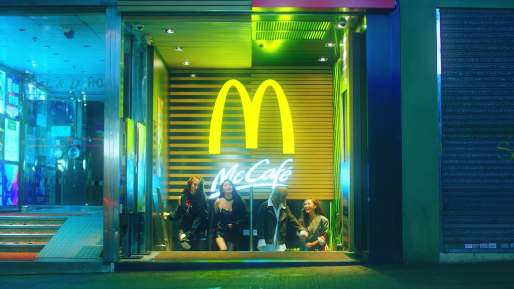 The song cuts out again for our second false ending, and then we come back to this image. And after everything, with this image of the girls having a laugh in front of the golden arches as the music swells, suddenly our mood piece turns into an ad. Is this just me? A student of semiotics might explain I’ve internalized the “language” of logos, and seeing them anywhere suddenly rewrites their context. And now I’m hungry.