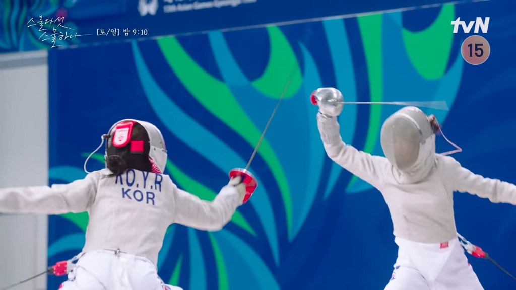 The fencing team has its final competition as a team, before Hee-do and Yu-rim graduate, and possibly Coach Chan-mi as well? She sits down with Yi-jin to relay the exclusive that she’ll be back coaching the national team, which fazes him not at all, instead hoping to get a scoop on Hee-do. As we discover, this is only the latest exclusive from Chan-mi, and we learn via flashback exactly what happened between her and Hee-do’s mother Shin Jae-kyung. Years and different actors ago, Jae-kyung was the one in need of rescue, breaking down at the thought that she missed an interview with gold medalist Chan-mi, who then swoops in like a hero. Their friendship dynamic is a lot easier to understand when we see young Jae-kyung as a squirrely nerd and young Chan-mi a cool, impressive hero, and it stings to know what they both become.