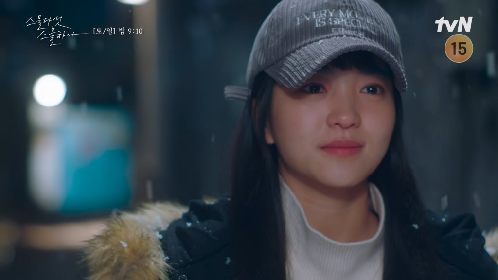 The format of K-drama doesn’t lend itself to “perfect episodes” any more than American prestige television, so critics and even amateur critics like myself will feel clever for pointing one out. Twenty-Five Twenty-One is one long story, but I was reminded of the sixth episode of The Beauty Inside, which felt relatively self-contained and was so moving. Coincidentally, it also features the first kiss. Now, technically, episode 13 is not Hee-do and Yi-jin’s first kiss, but it may as well be, and is in a general sense, in the sense of genre and the decorum around its elements. It was big and larger than life, with Bibi’s “Very, Slowly” coming in at full volume, with the snow falling around them.