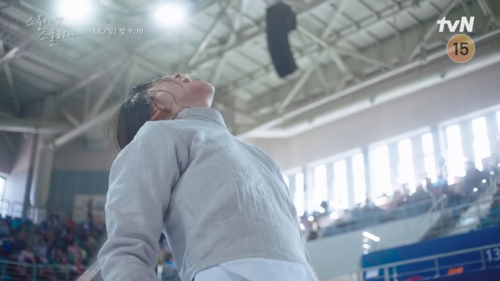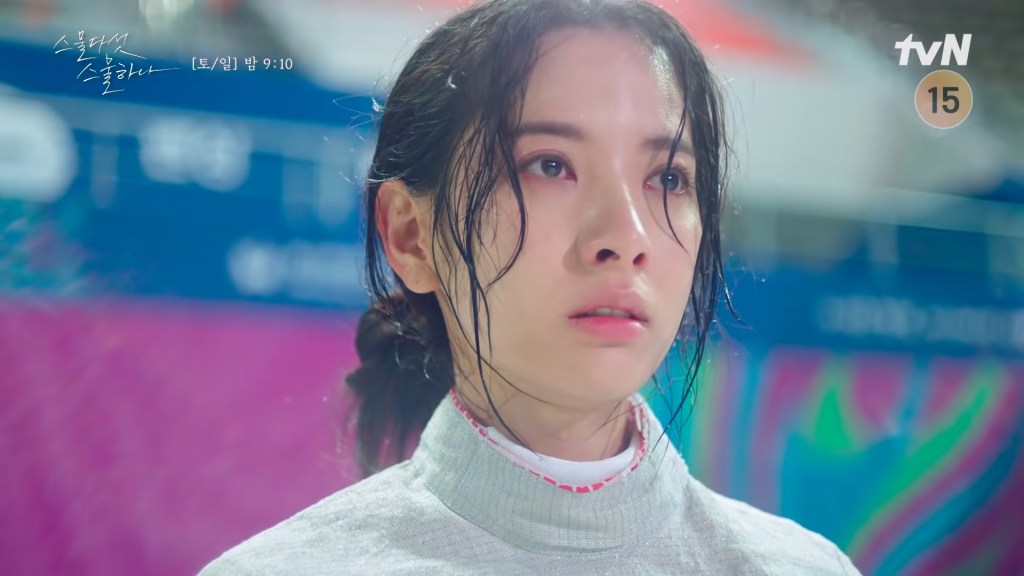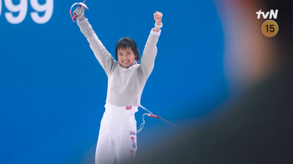 Like Yu-rim, Heidemann was the favored player here, and even more scandalous, the time keeper wasn’t a friendly Australian parent but a 15-year-old volunteer. The image above of Shin A-lam should ring familiar to Twenty-Five Twenty-One viewers. But as it will for the kids of Taeyang High, time has passed for Shin, who even appeared on King of Masked Singer a couple of years ago. “I still feel disappointed whenever I think about that day,” she says, “but I believe I was able to grow up and mature as a fencer afterward. And it took a long time for me to reach that conclusion.”