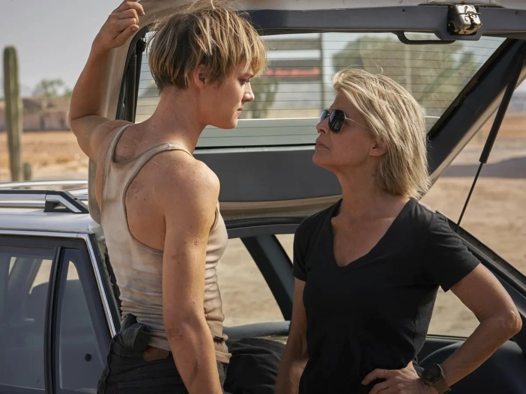 First of all, there is definitely a problem with killing John Connor, and I hate saying that because the outrage it generated recalled in micro the embarrassing toxicity around The Last of Us Part II. But true enough, Dark Fate simply shifts the focus from Sarah and John onto a new character, and it doesn’t just erase John (which is, like, whatever) it significantly reduces Sarah. Her part in Dark Fate is difficult to describe, being the grumpy guardian who can do anything but isn’t a cyborg or Terminator. Everyone’s grumpy, in fact, especially Mackenzie Davis, who at one point tells Sarah, “Do that again and I will fuck you up.” It’s rare and cool to hear from female characters, but it doesn’t really work in context.
