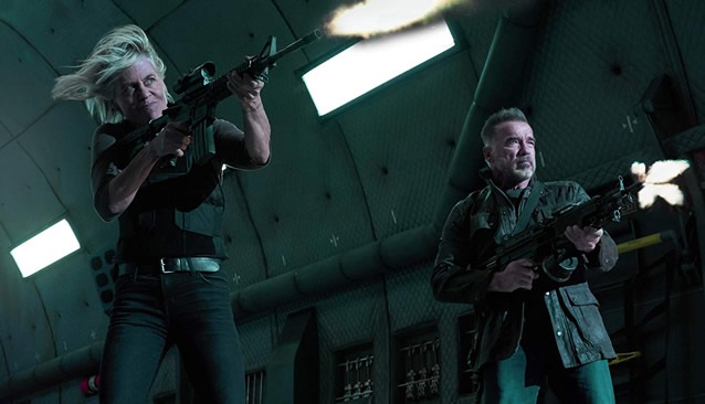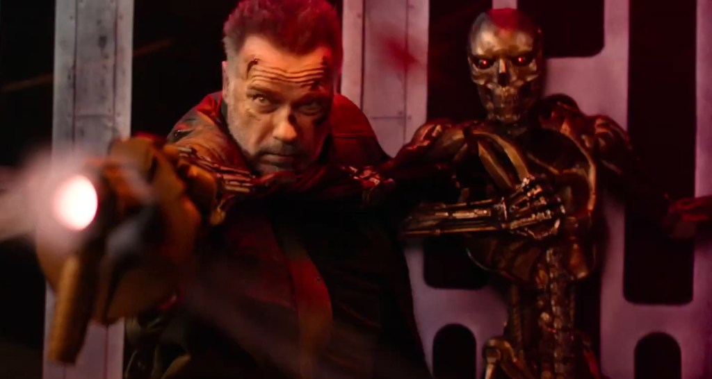 Surprisingly interesting was Arnold’s Terminator, who plays a kind of “legacy” role here like Rick Deckard in Blade Runner 2049 or [endless list] but is actually given a character. We know that Terminators age because Genisys already wanted Arnold back and explained it, so what’s new here is that his machine-program search for purpose led him to essentially start a family. This sounds a lot like one of my sitcom pitches for a Terminator spin-off, but it’s surprisingly affecting when he has to leave on what’s undoubtedly a suicide mission. To speak of legacies, Arnold has done a lot of “colonel visits the retired badass for one last job” scenes, but here’s one that captures the emotions you’d imagine might play in that scenario: loss, uncertainty, fear.