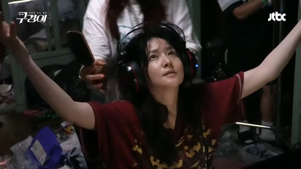 In an interview with The Korea Times promoting her return to the big screen in 2019, she said, “Nobody can be spared from the passing of time,” and that “looks were less of a concern to me during filming.” It must be dealt with, no matter how, and that’s such a greater battle for the so-called “beauty who never ages,” a true legend of hallyu – and my first, most beloved idol. Now fully reengaged with film and TV projects, her latest venture is the titular role in Inspector Koo, a 40-year-old ex-detective who’s aged about ten further years following the suicide of her husband. When first we meet her, she’s the portrait of modern depression, clacking away at a keyboard on one of those Korean MMOs, pounding energy drinks late into the night and releasing the empty cans to the floor for the cockroaches. Her hair is a fly-buzzing mess and she can barely keep her eyes open. There’s a recurring gag that people on the street react to her as if she’s a ghost or a zombie. A teacher suddenly rushes schoolchildren onto the bus and orders the driver to hurry, and sure enough, it’s Koo shambling around the corner.