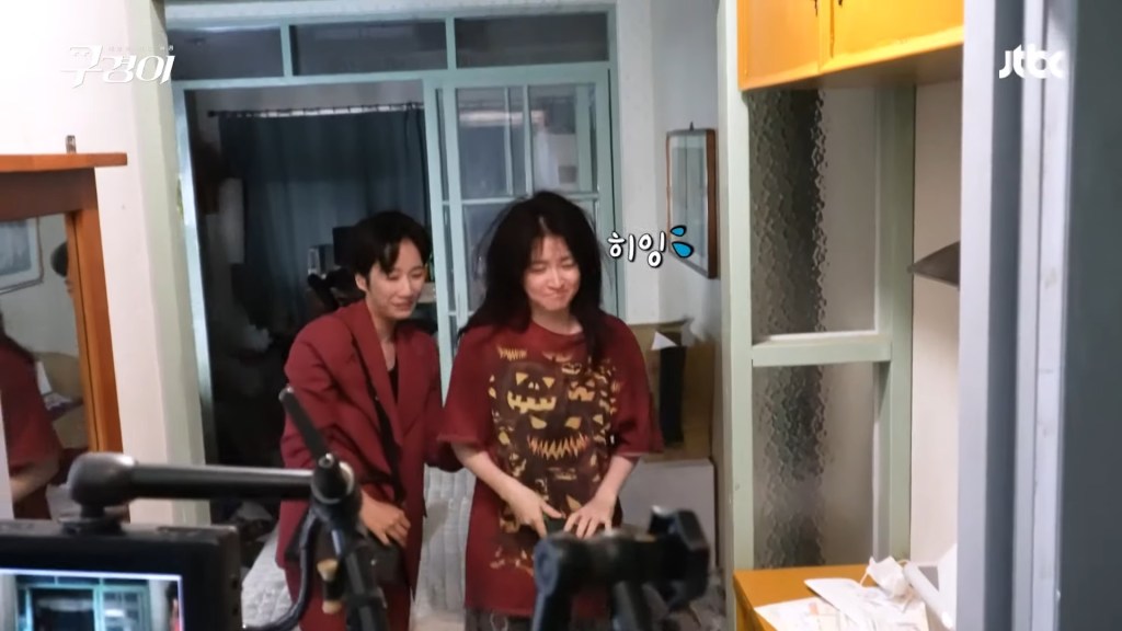 The show breaks a lot of rules to achieve its cinematic language, with fourth-wall moments or on-screen graphics communicating Koo’s alcohol/energy level. There are flashbacks, and for particularly dramatic flashbacks, Koo may find herself in a sort of mind theater with big screens displaying Yi-kyung’s face. Koo manages to pull off surreally effective spin-kicks, a far departure from her typical bumbling, physically-inept self or her normal-person flashback self. How does the show reconcile all these styles? Episode five begins to explore Yi-kyung’s origin story, and remarkably, the engine for silliness effortlessly shifts to generate creeping atmosphere. My initial reaction to Inspector Koo was that it’s a show caught between genres and tones, like my experience with Strong Woman Do Bong Soon, which cut between a light romance and Criminal Minds, but I’m seeing now that it’s more confidently elastic, in the style of an Edgar Wright or Taika Waititi.