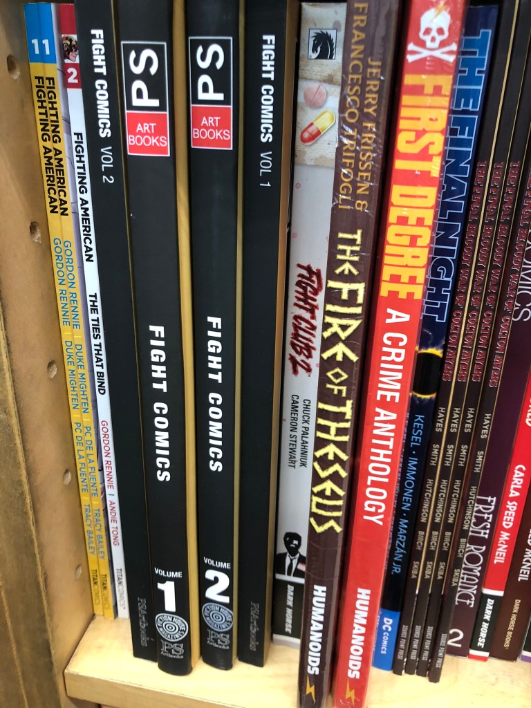 I met up with Donovan and Josh that night and then Stella later. The next morning, Stella and I got breakfast sandwiches at a pretty famous bagel place — if the line was any indication. We sat in a park nearby and it was nice. Later, her friend The Professor arrived, an actual New Yorker, and we spent time at Midtown Comics. By this point, my body was in shambles, and I’d often squat down to “read” book spines because I couldn’t maintain an upright posture. It’s extraordinary, the toll inactivity takes. If only it weren’t the better option.