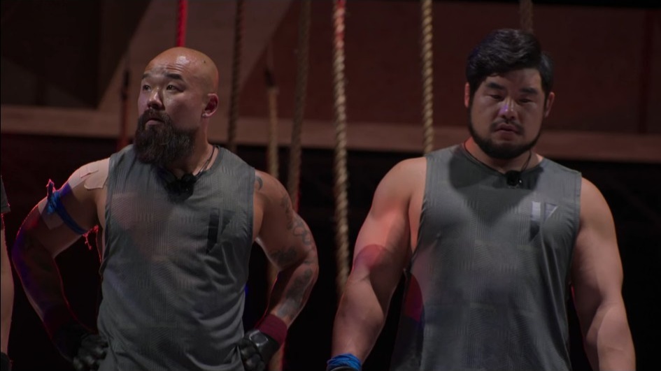 We pick up on our cliffhanger, with the exciting and improvisational match between Dong-guk and Sung-hoon. I did not watch these episodes back to back, which may have impacted some of the drama, but in this case, that’s a good thing. Again, it seems that every contestant joined Physical: 100 for a different reason, or they may have discovered that reason once inside the mysterious superstructure (which we’ll see more of in this episode). Dong-guk really wants to challenge his senior in a fight, and the game’s objective becomes almost secondary – until Sung-hoon leaps onto the ball with seconds to go.