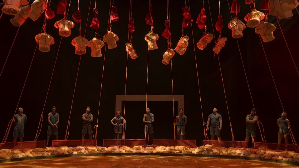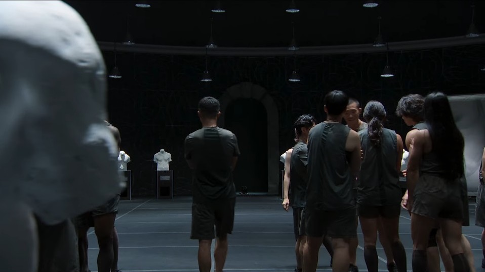 Anyway, the twenty-five contestants eliminated from “Moving Sand” gather around this circular arena and lament the twisted sight. What a cruel display! But things change when they’re informed that this is their second chance.