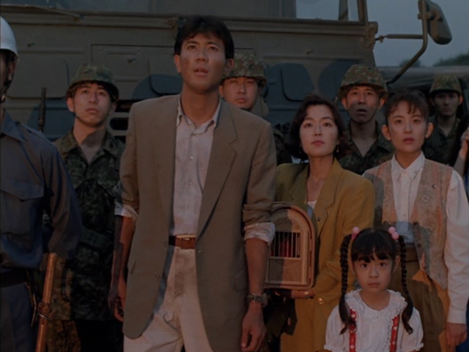 Returning favorite Miki Saegusa meets up with Masako and Midori, and together they track down Takuya. Turns out, Midori knew all along that her dad was a scumbag, but at least he can make the right decision now and return the Cosmos to Mothra. By this point, Ando has also turned around, but both arcs of redemption are more immediately motivated by the impending destruction of Japan. The flipside of this thematic framework is “Why is humanity worth saving,” right? Learning that Mount Fuji is about to erupt, members of the National Environment Planning Bureau drive out and find an unconscious woman and her daughter on the roadside, and they pick them up. This is ideal, to imbue heroism with thematic purpose. Why, then, and again, wasn’t it the actual heroes doing this? Why is it always somebody else?