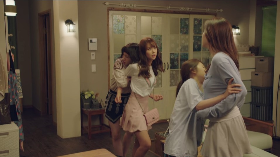 And yet, in the end, it seems that Ye-eun is the moral victor. Yi-na will give up her misbegotten ways to pursue a more normal career, and that’s pretty much how it’s framed. It isn’t “She’s finally chasing her dream,” because her interest in designing fashion comes from her interest in having worn fashion – it’s all she knows. My instinct as an American TV-goer is that the other women should have learned to accept Yi-na’s alternative lifestyle, especially as I got a lot out of those culture clashes, over how difficult and novel Yi-na presented to the rest of the household. I love her outward confidence, this sort of Don Draper-esque self she projects. I prefer when it’s undercut by moments of levity rather than direct thematic deconstruction, like that micro moment when she pushes Ji-won out of the way to get into the bathroom. That slayed me.