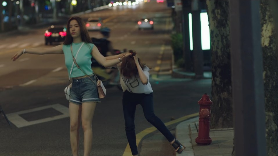There’s that moment when Yi-na returns home in time to witness Ye-eun’s boyfriend Doo-young pull her out of his car and onto the ground, after which she hits Doo-young in the head with her purse. Ye-eun storms into the house and moments later, as a confused Eun-jae stands witness, Yi-na stomps after her and bangs on her door. They get into a screaming match, and Ye-eun slams the door on Yi-na, who then leaves in a huff. This is something that only frustrates Ye-eun further, indeed, that this badass has a heart of gold. How could someone so repellant be, at her core, a good person?