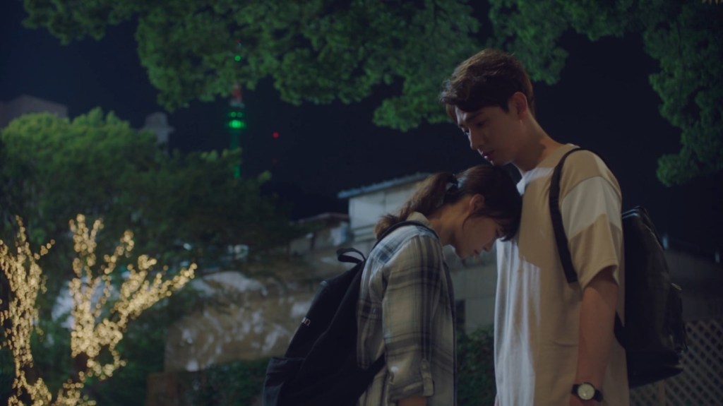 One of my favorite moments in a K-drama is in Search: WWW, when Seol Ji-hwan bids farewell to Cha Hyeon outside the cafe. On paper, that’s all that happens. But it’s in the way it’s shot and scored and performed – and even lit. It’s so magical, and so heartbreaking, like time is standing still (with the appropriate amount of slow-motion). This might be the source of my kneejerk against something so big as rescuing Ye-eun from a kidnapping situation. The emotional climax should’ve been earlier, in her goodbye or her passing him on the street that fateful day. Blow up one of those moments with all the tools in the filmmaking toolbelt, right?