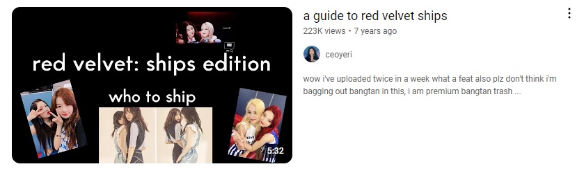As far as I understand it, parsing these relationships is a fan sport known as “shipping,” which carries a romantic undertone. It’s about noticing small actions and patterns. Don’t you like the way Wendy stares into Irene’s eyes during that one song? And then, a period of inactivity is a “cold war,” or even a “cold war era.” I don’t know how old I’m sounding, but this is the terminology I’ve encountered over the years watching fanmade videos on YouTube.