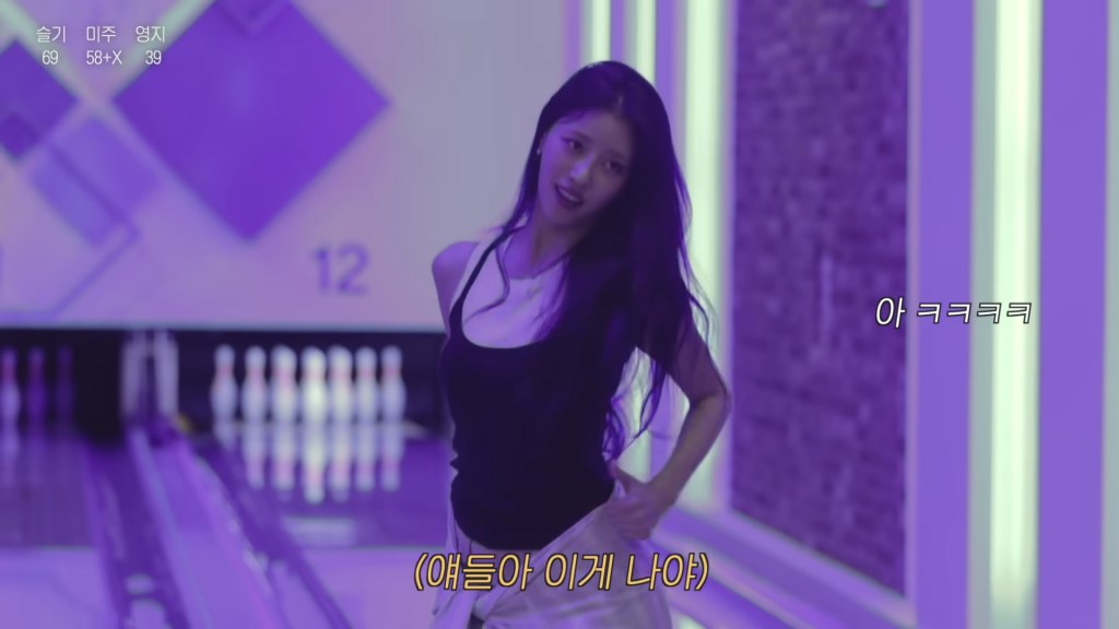 It’s a chronicle of their celebrating Youngji’s birthday at a hotel with some sort of cool whale video display (I don’t know how to describe it), ending in a surprisingly close bowling game. And against my earlier point, this video is product placement, for the hotel, which is mentioned in the YouTube description. But it looks like a cool place. Why not make some money?
