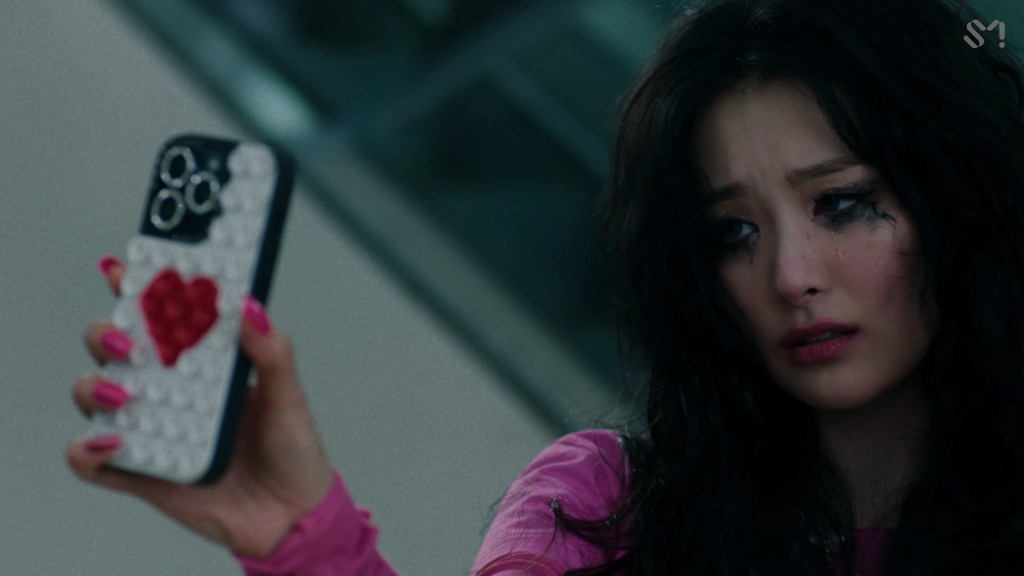 It all feels so effortless and self-assured. The flailing desperation of a mascara-streaked Seulgi in “Baby, Not Baby” seems to reach toward commentary on the attention economy, but you’d think as an idol in one of the biggest K-pop agencies on the planet, she could make that venom more specific, even introspective. And not to conflate a human being with the characters she plays, but Seulgi IRL is shy and artsy, well-regarded for being kind (in an industry that should theoretically breed kindness out of its stars). She really is donning Hot Topic Harley Quinn cosplay for this one, and I don’t buy it — I wasn’t even in the aisle.