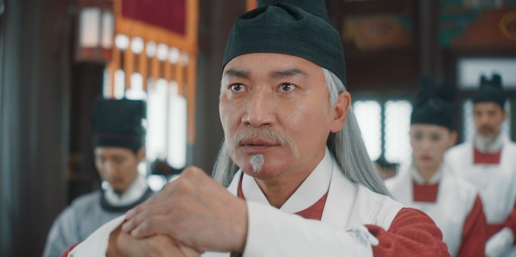 Before we get to the contest, special mention must be made of the attack on Chun-saeng’s house, with assassins specifically ordered to kill Ji-yeong. This was actually the doing of Joseon officials striking a deal with Director Yu in an effort to cancel the contest before it even begins. It is, I think, a wholly separate plot from that of resident bad guy Prince Jesan (played by a Choi Gwi-hwa bringing his frenzied villainy from Squid Game 3) and that of the ever compelling, heart-meltingly imperious Consort Mok-ju. God, I wish that woman would threaten to annihilate my entire bloodline. Jesan wants Joseon to lose the contest in order to provide pretext for an overthrow, and I think Mok-ju just wants Ji-yeong out of the picture. It’s the lead Ming cook, white-haired Tang Bailong, who overhears the first of these plots, and steals into the night with a message for Ji-yeong’s kitchen staff. As it turns out, Tang Bailong is the boss of the bosses – almost to a fault, as we’ll see. The man will not miss an opportunity to undermine the Ming’s trickery and make Joseon look awesome.