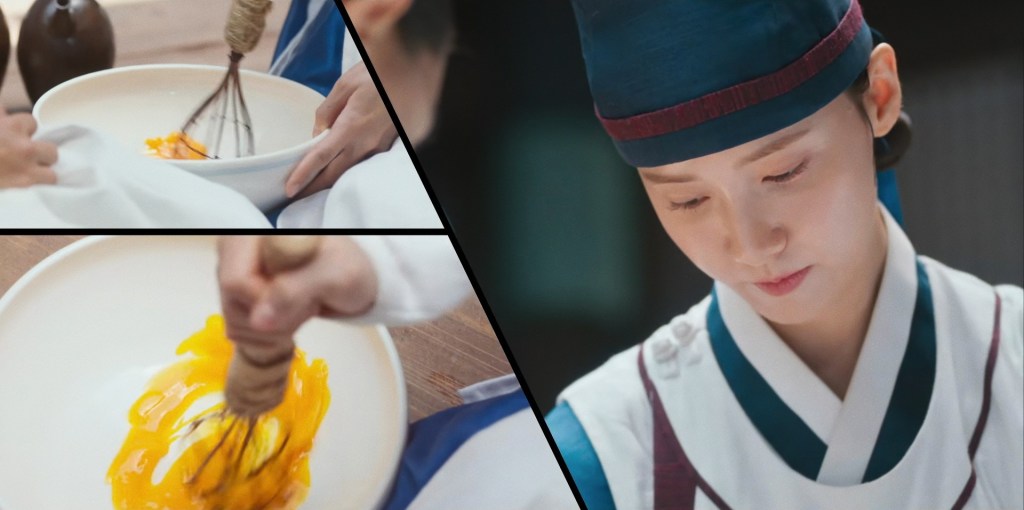 It’s also that we’ve spent the last four episodes fretting and puzzling over this cooking contest. Ji-yeong won over the grouchy inventor with a taste of home, survived an assassination attempt that forged unusual alliances, exposed some Ming treachery (and witnessed the origin of Kung Pao chicken), and after all that, all the team-building and risky pleas to the envoy for fairness, she’s willing to throw it all away to make a connection from chef to chef. That’s really the trick of the sports movie, isn’t it? It’s not about the victory, but what it means for the character – which is why defeat can still make for a dramatically satisfying resolution. We get another melodramatic flashback explaining that Kong Wenli’s grandmother made food by mixing all the ingredients together, and the sequence goes on for, like, five minutes, my tears running the entire time.