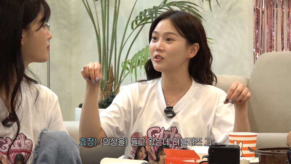 Of course, it could also be that Seulgi can’t get a word in edgewise. She gives voice to something that was practically the theme of her video with Youngji and Mijoo, which is that she’s “slow to load.” She watches, helpless, as everyone jumps from topic to topic, ultimately making for a collective stream of consciousness. It’s clear by now that Seulgi, in addition to being naturally quiet, is also a thoughtful person who likely prefers to chew on an idea. She’s come to think of that as being “slow,” like her namesakes “Sluggy” and “Slowgi,” but I really think it’s just having a different kind of brain. In addition to being a musical artist, she’s an artist, too, with a talent for illustration and an impeccable taste in fashion. She probably speaks the least in this video, though to be fair, if there’s food in front of Seulgi, everything else is secondary.