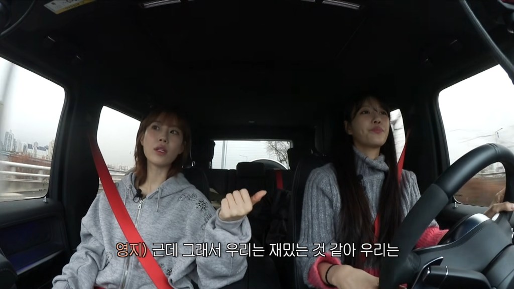 They’re close friends, of course, but they’re also equally loud and obnoxious, making the theme of this video “Friendship at Risk.” I feel for Mijoo here, because she is the host — and the driver, which comes into play — and when you have plans, things suddenly have to “go to plan.” All Youngji has to do is get in the car. The plan, unfulfilled as of this first installment, is to go glamping, possibly in Gangwon-do.