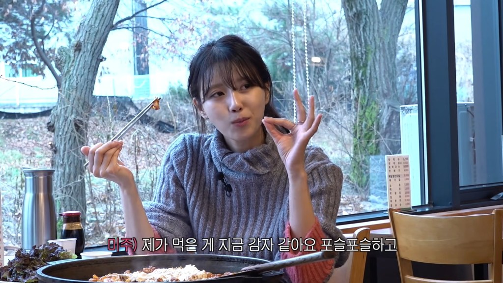 And so, they arrive at Hakgok Intersection Dakgalbi, according to the English subtitles, only after Mijoo lays down a road rule: “don’t talk back to me.” Inside the restaurant, Mijoo has another idea, that they’ll add “thank you” to the end of each sentence, to which Youngji quickly replies: “Can you just not talk for a bit?” The dakgalbi is prepared at the table, and it’s some sort of stir-fried chicken dish. Looks amazing.