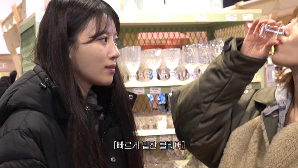 They find some sort of Lady Gaga wine in the basement, and Youngji breaks one of the trip’s friendship commandments when Mijoo halfheartedly takes her picture and Youngji complains. Apparently, one of the rules is “Don’t get annoyed,” which is how Mijoo ended up paying for lunch. So Mijoo now rushes over to the staff to tattle on Youngji. It doesn’t seem to take.