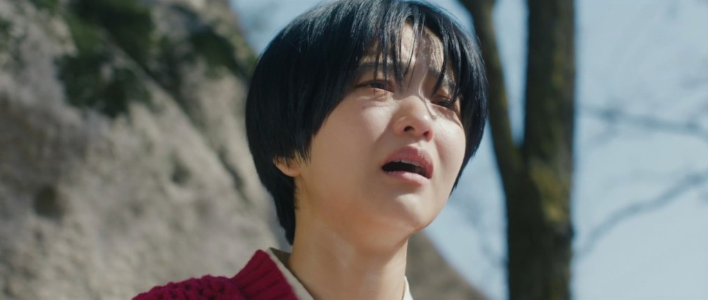 The nonstop practice attracts worried attention in two fateful encounters. First, Director Kang, who hears the wailing after hours. When Jeongnyeon screams in frustration, it triggers a flashback to when young Kang tried to stop her friend Chae Gong-seon from pushing herself too hard. Like in Whiplash, Gong-seon responds with venom, that Kang could never understand the pursuit of perfection. And now the same pressure is bearing down on her daughter, just as she’d feared. This is the kind of material that Kim Tae-ri can really sink her teeth into. The first six episodes showcased her still impressive but now familiar ability to shed decades of maturity to convincingly play a teenager, but here, she focuses all of that energy into a self-destructive mania. She shakes and shivers as she tries again and again to nail the lyrics. Kang can’t stop her, and neither can Yeong-seo, who finds her in that cave in the mountains. In yet another testament to how quickly the show moves, we’ve gone almost instantaneously from Jeongnyeon witnessing Yeong-seo’s lowest, most pitiable moment, to Yeong-seo witnessing Jeongnyeon’s. She’s barely recognizable, with wild hair in her eyes as she argues with Yeong-seo outside the cave. Of course, this is Hye-rang’s plan coming together, as she apparently hadn’t taken Ok-gyeong’s warning seriously. I don’t know how. If she looked at me like that, I would’ve reconsidered every decision I’d ever made in my life.