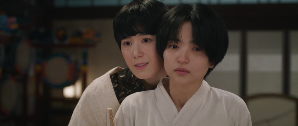 Usually, that moment signals the end of the rivalry, but the relationship between Jeongnyeon and Yeong-seo remains complex, even if its component parts keep changing. Its next form? A love triangle. Yes, the seventh episode hits the big gay button, confirming – at least, to me and my experienced caution – that Ok-gyeong and Hye-rang are indeed a couple, raising a young daughter together. As unlikely as I still think that would’ve been in 1950s Korea, progress has not been a single, global line trending gradually upward. Lots of back-and-forth, to say the least (I did not know until recently that the Weimar Republic was basically San Francisco, and that is so goddamn depressing). In addition, Joo-ran’s been awfully quiet since her rehearsal with Jeongnyeon, whose intimacy activated something deep inside. Naturally, Jeongnyeon is boyishly clueless, later taking Joo-ran’s hand in hers to warm it up. Director Kang announces that the next production will be the theater equivalent of a varsity sporting event – a collaboration with six other companies – with open auditions for the young leads, but with the catch that trainees will have to audition together. Wait a minute, that’s two parts, but we have three trainees. Oh, no… Obviously, Joo-ran will want to be with Jeongnyeon, but Yeong-seo will want to be with Joo-ran. Who Jeongnyeon picks, that’s unpredictable.
