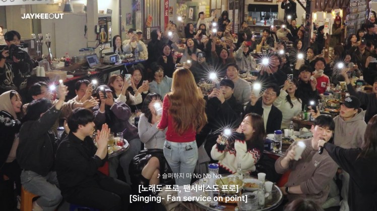 For proof of Apink’s beloved nature, we can look at their promotional tour. They hit up the usual venues, like radio programs and YouTube channels (including Daesung), and one very clever appearance with “Jaykeeout.” Here, they sneak into a lively bar/restaurant in Gangnam, and from a back room, sing a couple of their hits — “LUV” and “Mr. Chu” — as if they’re the recordings playing over speakers, before walking out mid-performance to shocked reactions.