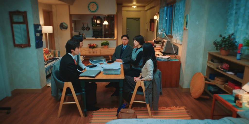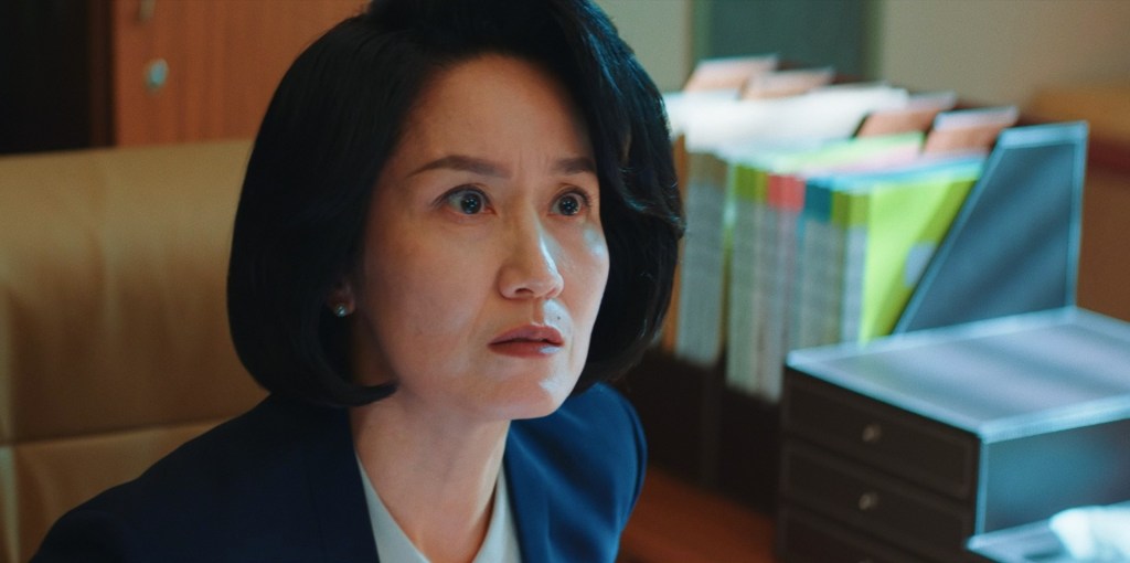 The most astonishing addition to Dorm #301, of course, is ex-president Shin Jung-woo. An exceptionally late activation, with the show’s male lead presenting as a mystery box for so long that Albert of all people is a more eligible candidate. Shin would appear to oppose Hong, inadvertently as president of Hanmin and then consciously once her identity is ascertained (which took a little too long, buddy), in a repeat of his apparent betrayal during her CPA days, which took the engagement rings out of him like Sonic the Hedgehog touching a spike. And yet, Hong’s boss Yun Jae-beom still carries the torch, treating Shin like a son-in-law at meals despite them not being a couple and him not being Hong’s dad. The actual dad is slightly less goofy. Granted, Jae-beom does divulge to Shin, over a lunch date, his own tragic backstory. His younger brother was an accountant at Hanmin under investigation for fraud (there are only two places you can work in Hong‘s South Korea). When he reached out for help, Jae-beom reacted with anger, out of self-preservation, and he’s lived with regret ever since the brother’s suicide. This personal tidbit was intended as a fable regarding Hong Keum-bo, and it does move the stoic giant. Time and again, he’s jumping in to protect her from harm or maintain her cover, but the complicating issue is that doing so has always doubled as self-interest. Is Shin a good guy? Is he a bad guy? It’s not like Hong’s feelings on the matter are clear, though it’s impressive how unreliable her judgment of character can be, as we’ll discuss soon (#Justice4Nora).