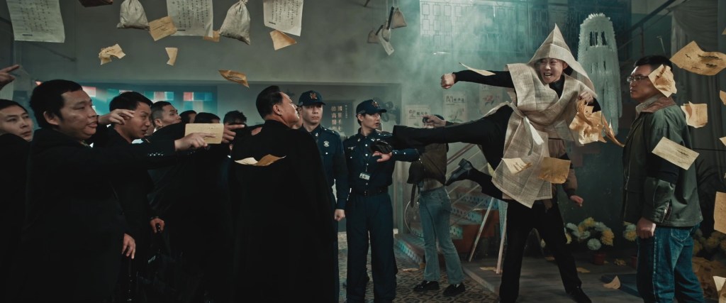 Gui is played by Philip Ng, who played the crazed, unstoppable villain in Twilight of the Warriors: Walled In the very same year. He makes use of his physical talents when his wide-eyed, boyish charm doesn’t always sell “hardened gangster,” culminating in a phone booth brawl likely inspired by Captain America: The Winter Soldier. Notably, Liang had earlier pulled the “rapidly catch falling objects on a tray” move from Spider-Man, and the film’s ease with borrowed ideas contributes to its quick feeling. Not cheap necessarily, though the hyper-real clarity and almost stinging light sources effect a Walmart quality. I think it just confuses comedy for speed, nailing the rapid-fire rhythm but even for sequences without jokes. Shots don’t breathe, and neither do scenes themselves, with cutaways on the punctuation of sentences, delivered so fast I couldn’t tell if the movie was dubbed.